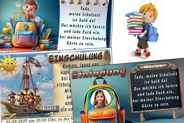 Individuelle Einladungskarten zur Einschulung – liebevoll gestaltet, hochwertig gedruckt und ganz nach Ihren Wünschen personalisierbar. Begeistern Sie Gäste mit einzigartigen Karten zum Schulanfang Ihres Kindes. Jetzt gestalten und bestellen!