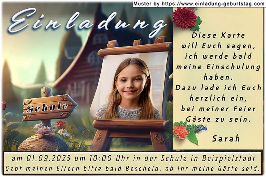 die Einladungskarte zur Einschulung mit dem Foto des Kindes 03