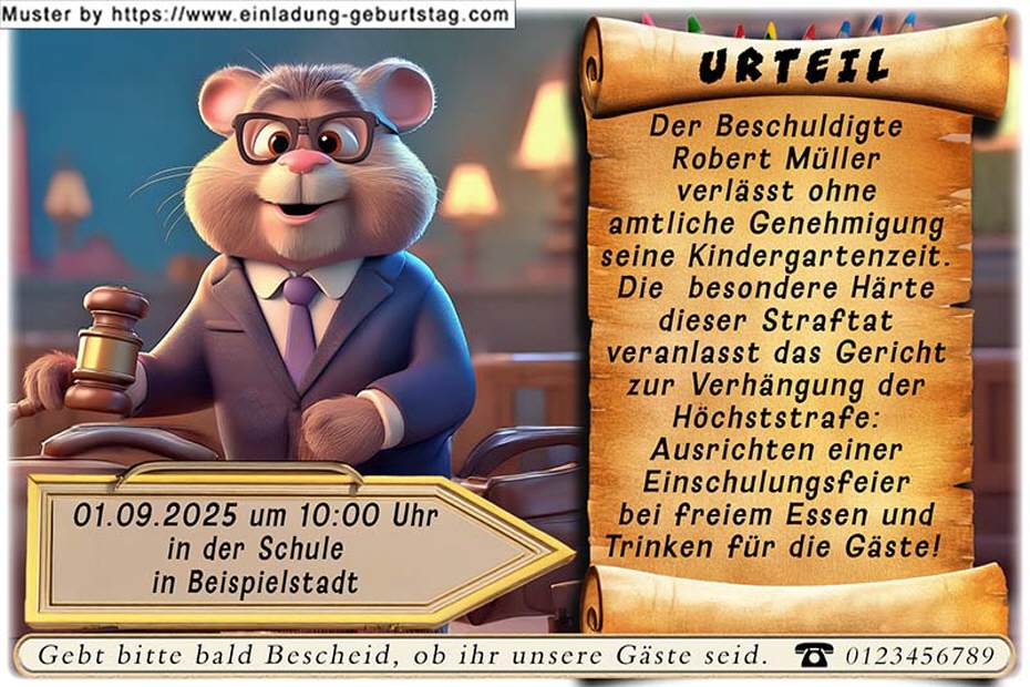 Nach dem Eingang Ihrer Bestellung erhalten Sie ein Vorschaubild der Einladungskarte per E-Mail (während der Geschäftszeiten - mit Wasserzeichen MUSTER)). Dann haben Sie die Möglichkeit, den Druck freizugeben oder Änderungswünsche zu äußern. Dies können Sie per E-Mail (webmaster@einladung-geburtstag.com) oder Telefon (03544 5589 356) erledigen. Beide Angaben befinden sich in der E-Mail mit dem Vorschaubild.