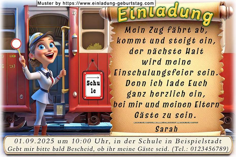 Der Zug zur Einschulungsfeier fährt ab und Sie laden Ihre Gäste zum Einsteigen ein.