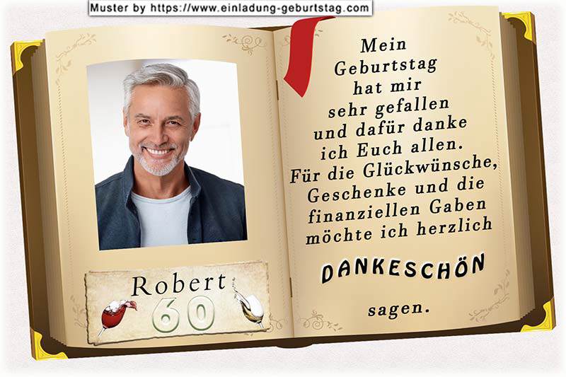 Ihr Foto wird in die linke Buchseite eingesetzt. Darunter befinden sich Ihr Name und Ihr Alter. Auf die rechte Buchseite wird Ihr Danksagungstext gedruckt.