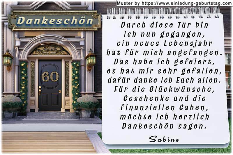 Auf die Tür wird Ihr Alter aufgesetzt. Ihr Danksagungstext und Ihr Name befinden sich auf dem Textfeld rechts.