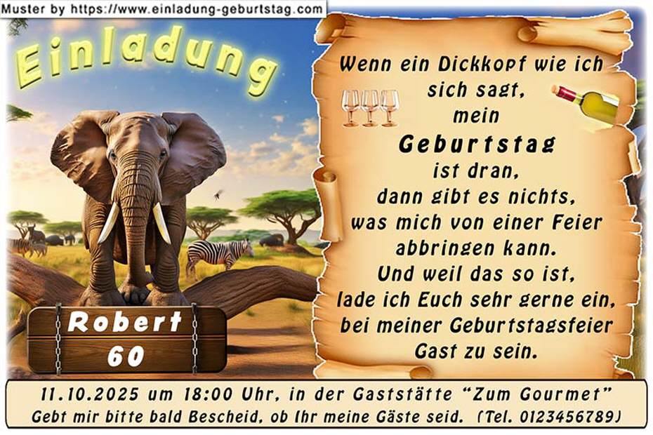 lustige Einladung Geburtstag - der Dickhäuter