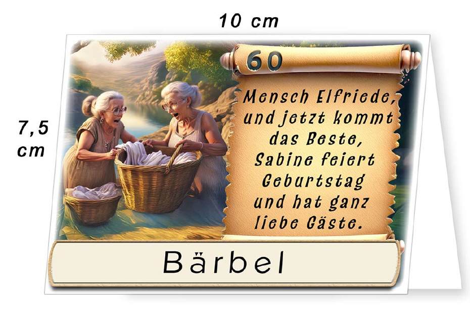 Tischkarte Geburtstag, tratschende Waschfrauen