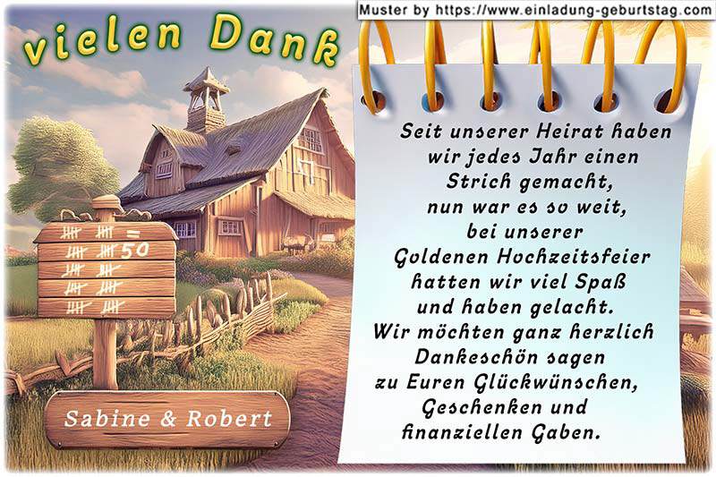 50 Striche auf einer Holztafel - Ihr Danksagungstext wird auf das Textfeld rechts gedruckt.
