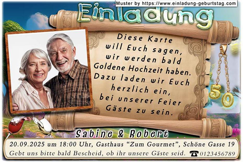 die Einladungskarte zur Goldenen Hochzeit mit Ihrem Foto 04