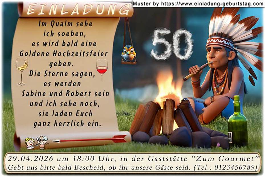 lustige Einladung Goldene Hochzeit - der Indianer