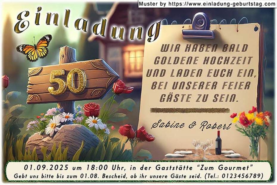 originelle Einladung Goldene Hochzeit, die Zahl 50