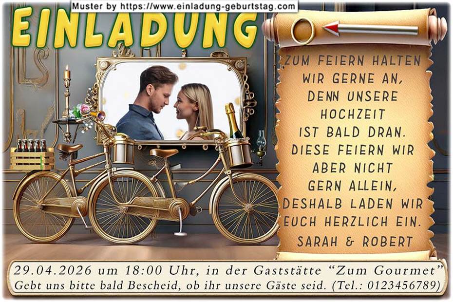Sie wünschen ein Vorschaubild dieser Einladungskarte mit Ihren Angaben ohne gleich eine Bestellung aufzugeben - hier können Sie es unverbindlich anfordern und nach dem Erhalt selbst entscheiden, ob Sie diese Karten bestellen möchten.