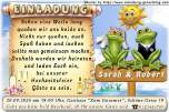 Unter die Frösche werden Ihre Namen eingesetzt. Ihr Einladungstext wird in das Textfeld links gedruckt.