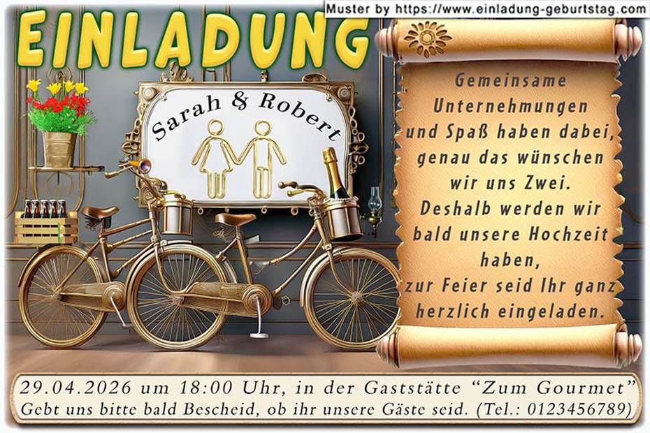 Sie wünschen ein Vorschaubild dieser Einladungskarte mit Ihren Angaben ohne gleich eine Bestellung aufzugeben - hier können Sie es unverbindlich anfordern und nach dem Erhalt selbst entscheiden, ob Sie diese Karten bestellen möchten.