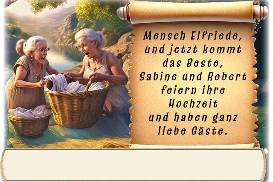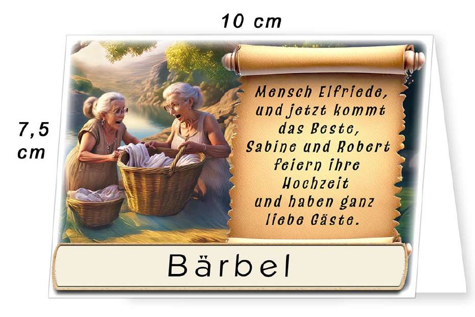 Tischkarte Hochzeit - tratschende Waschfrauen