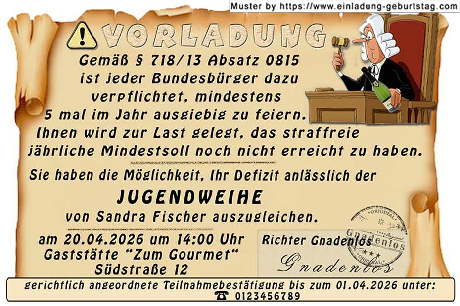 - erst unverbindlich ein Vorschaubild dieser Einladung per E-Mail erhalten und dann entscheiden, ob du bestellen möchtest - klicke hier