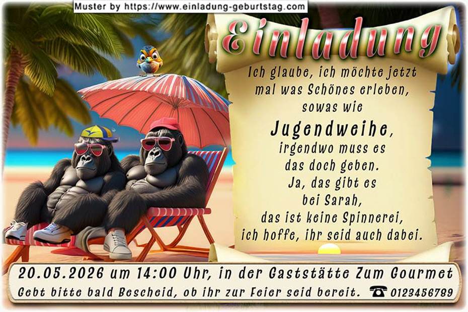 2 Gorillas möchten mal was Schönes erleben. Dein Name befindet sich im Einladungstext.