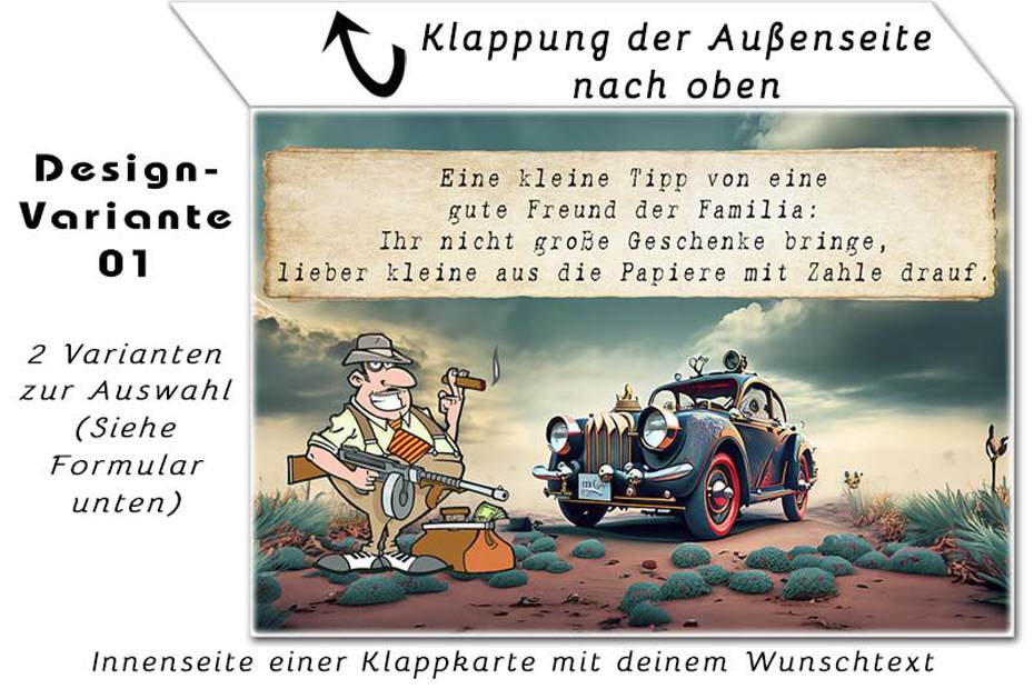 - als Klappkarte im Format 14,8 x 10,5 cm lieferbar (zusätzlich können Innenseiten mit Text oder Foto versehen werden oder leer bleiben zum selbst beschriften)