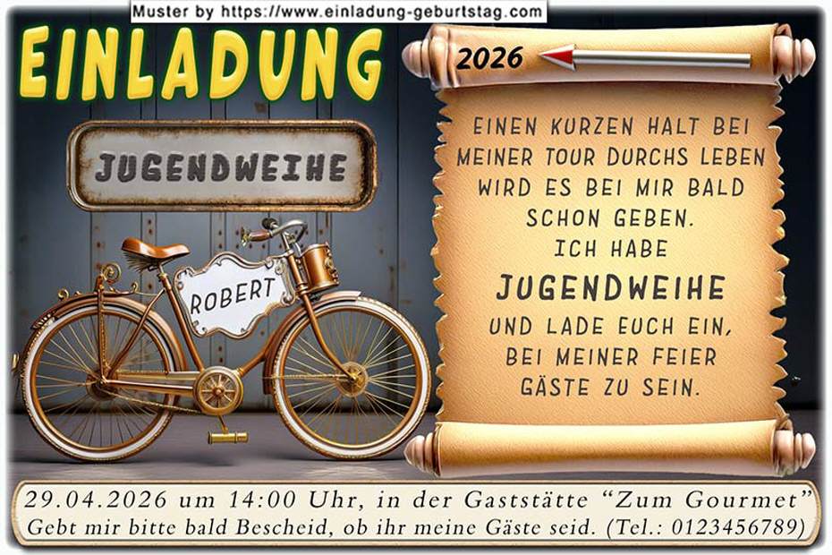 Ein originelles Fahrrad, auf dem dein Name steht. Ein Halt ist angesagt, denn du hast bald Jugendweihe.