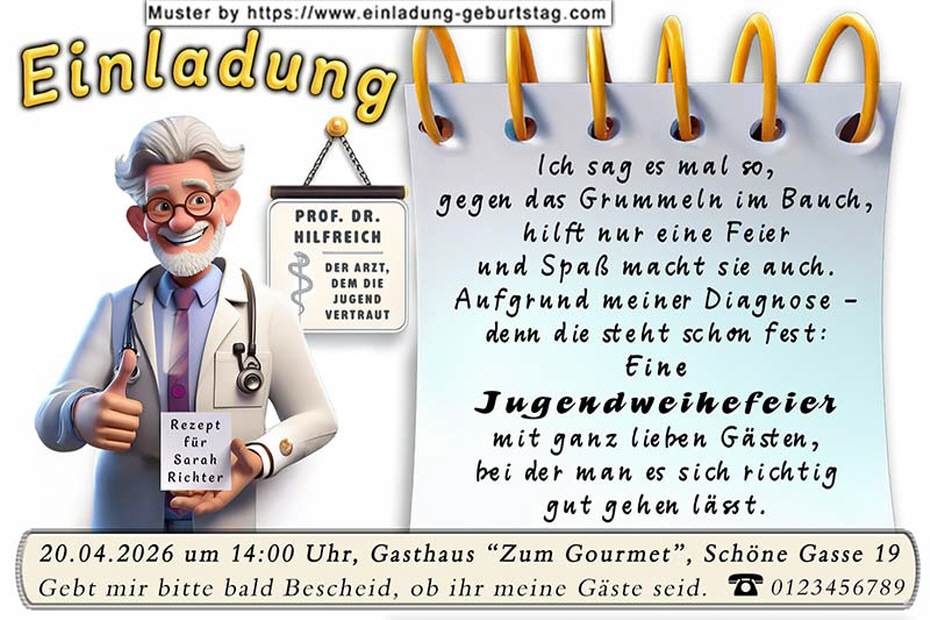 Du wünschst ein Vorschaubild dieser Einladungskarte mit deinen Angaben ohne gleich eine Bestellung aufzugeben - hier kannst du es unverbindlich anfordern und nach dem Erhalt selbst entscheiden, ob du diese Karten bestellen möchtest.