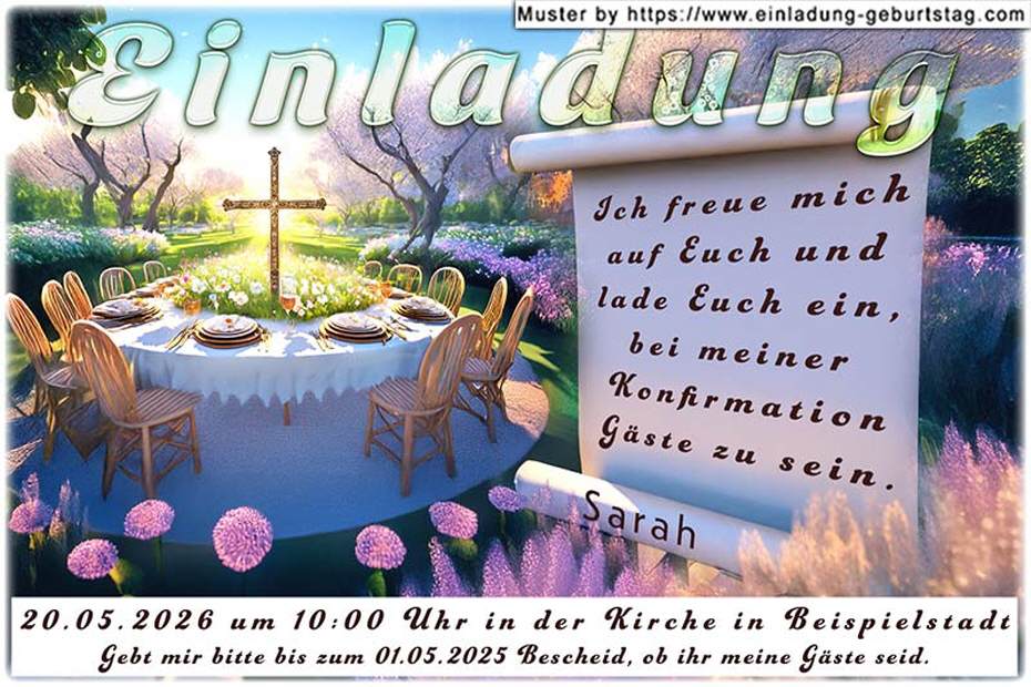 Du wünschst ein Vorschaubild dieser Einladungskarte mit deinen Angaben ohne gleich eine Bestellung aufzugeben - hier kannst du es unverbindlich anfordern und nach dem Erhalt selbst entscheiden, ob du diese Karten bestellen möchtest.