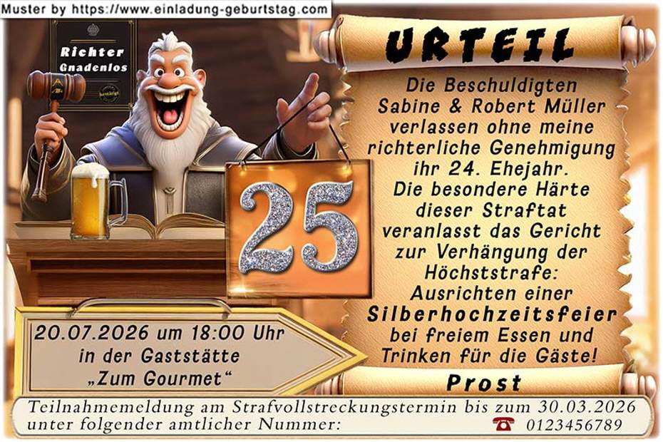 In die Textrolle wird der Urteilsspruch gedruckt, der auch Ihre Namen enthält.