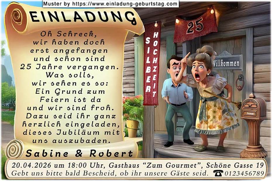 Wie schnell doch 25 Jahre vergehen können. Passen Sie den Einladungstext nach Ihren Wünschen an.