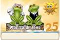 Auf das Brett, auf dem die beiden Frösche sitzen, werden Ihre Namen gedruckt. Der Name des Gastes wird in das Textfeld unten gedruckt. Auf Wunsch kann das untere Textfeld zum selbst beschriften leer bleiben. Dies können Sie im Warenkorb wählen.