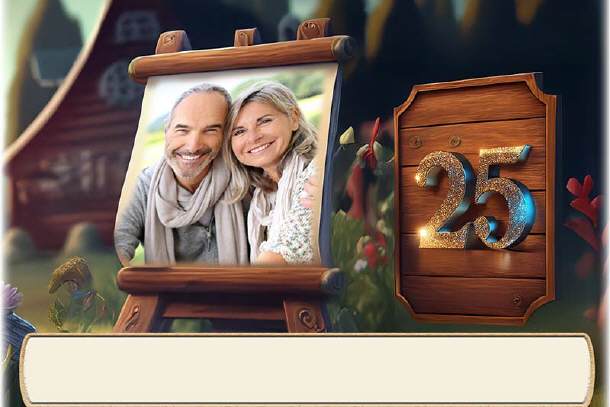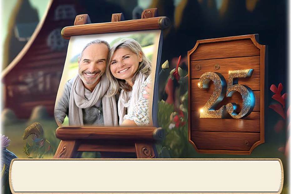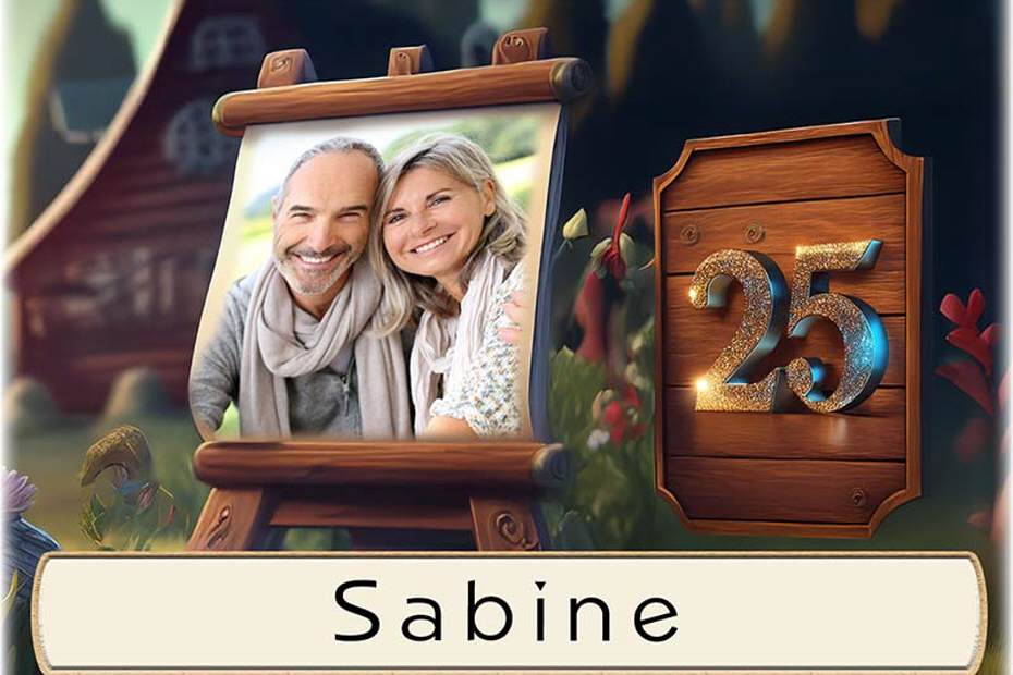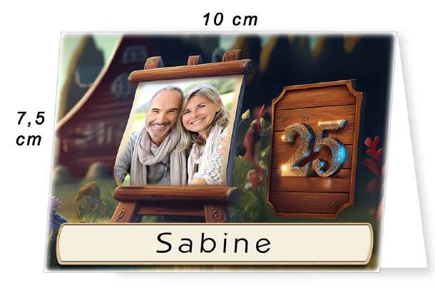 Ihr Foto wird in eine Staffelei eingesetzt. Ihre Jubiläumszahl befindet sich rechts daneben. Der Name des Gastes wird in das Textfeld unten gedruckt. Auf Wunsch kann das untere Textfeld zum selbst beschriften leer bleiben. Dies können Sie im Warenkorb wählen.