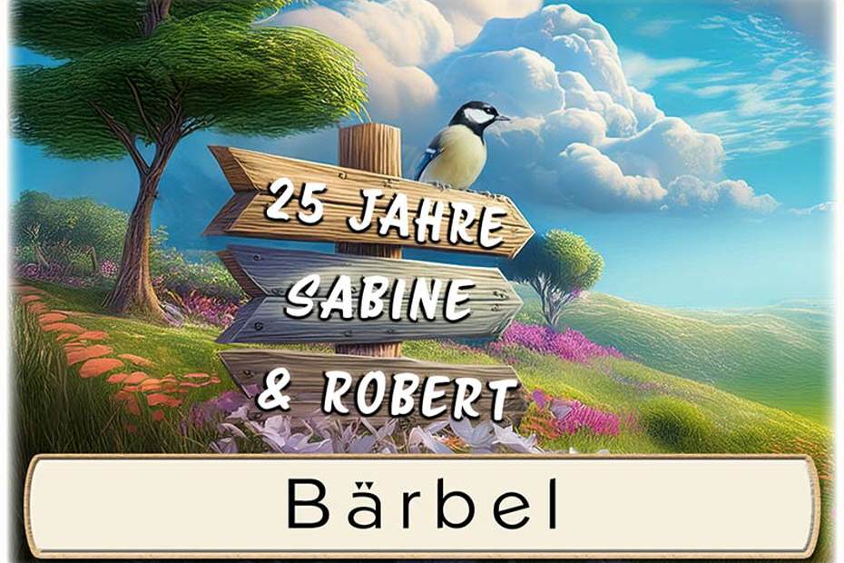 Auf dem Wegweiser befinden sich Ihre Jubiläumszahl und Ihre Namen. Der Name des Gastes wird in das Textfeld unten gedruckt. Auf Wunsch kann das untere Textfeld zum selbst beschriften leer bleiben. Dies können Sie im Warenkorb wählen.