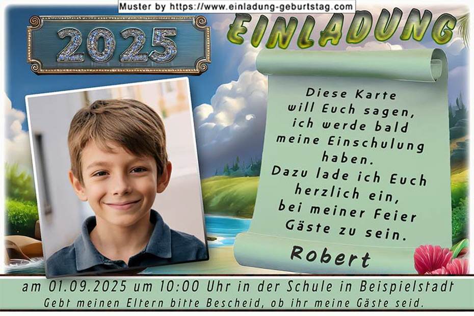 die Einladungskarte zur Einschulung mit dem Foto des Kindes 04