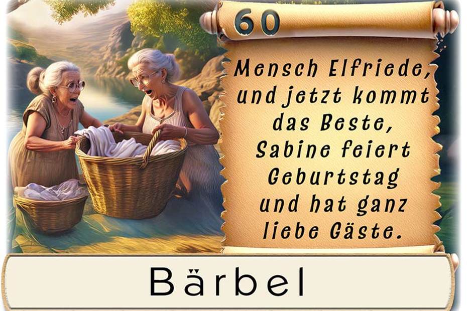 Tischkarte Geburtstag, tratschende Waschfrauen