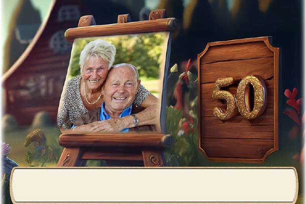 Ihr Foto wird in eine Staffelei eingesetzt. Ihre Jubiläumszahl befindet sich rechts daneben. Der Name des Gastes wird in das Textfeld unten gedruckt. Auf Wunsch kann das untere Textfeld zum selbst beschriften leer bleiben. Dies können Sie im Warenkorb wählen.