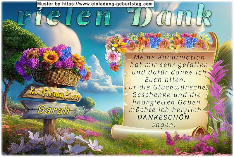 Nach dem Eingang deiner Bestellung erhälst du ein Vorschaubild der Danksagungskarte per E-Mail (während der Geschäftszeit - mit Wasserzeichen MUSTER)). Dann hast du die Möglichkeit, den Druck freizugeben oder Änderungswünsche zu äußern. Dies kannst du per E-Mail (webmaster@einladung-geburtstag.com) oder Telefon (03544 5589 356) erledigen. Beide Angaben befinden sich in der E-Mail mit dem Vorschaubild.
