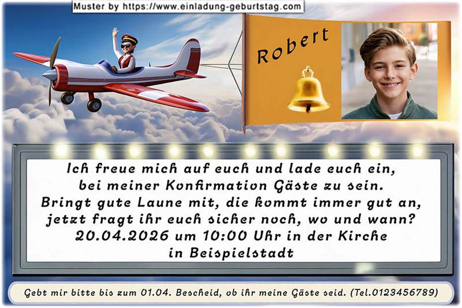 Du wünschst ein Vorschaubild dieser Einladungskarte mit deinen Angaben ohne gleich eine Bestellung aufzugeben - hier kannst du es unverbindlich anfordern und nach dem Erhalt selbst entscheiden, ob du diese Karten bestellen möchtest.