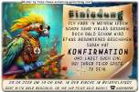Ein weiser Papagei, der dank seiner Brille in der Ferne schon deine Konfirmation sieht. Dein Name wird in den Text eingebunden.