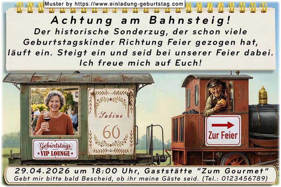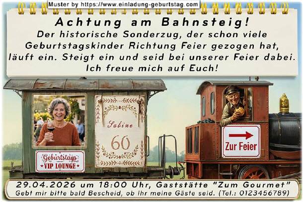 Ihr Foto wird in das Fenster des Waggons eingesetzt. Ihr Alter (jedes beliebige) und Ihr Name befinden sich rechts daneben.