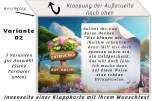 - als Klappkarte im Format 14,8 x 10,5 cm lieferbar (zusätzlich können Innenseiten mit Text oder Foto versehen werden oder leer bleiben zum selbst beschriften)