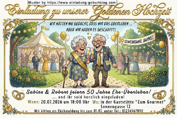 Einladung Goldene Hochzeit lustig - 50 Jahre Ehe