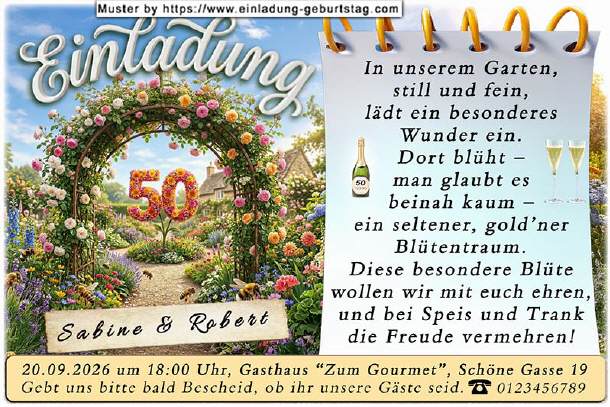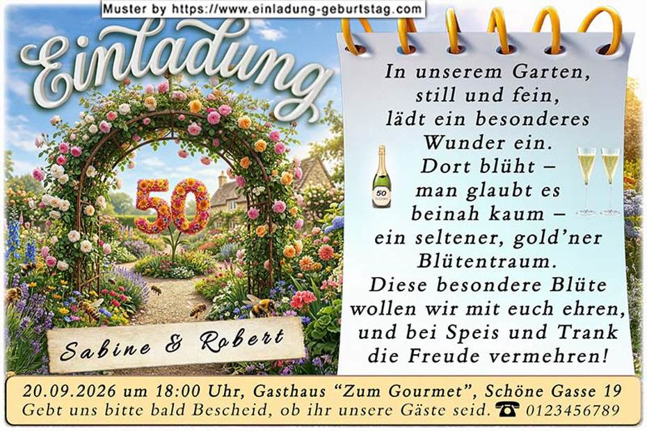 Nach dem Eingang Ihrer Bestellung erhalten Sie ein Vorschaubild der Einladungskarte per E-Mail (während der Geschäftszeiten - mit Wasserzeichen MUSTER)). Dann haben Sie die Möglichkeit, den Druck freizugeben oder Änderungswünsche zu äußern. Dies können Sie per E-Mail (webmaster@einladung-geburtstag.com) oder Telefon (03544 5589 356) erledigen. Beide Angaben befinden sich in der E-Mail mit dem Vorschaubild.