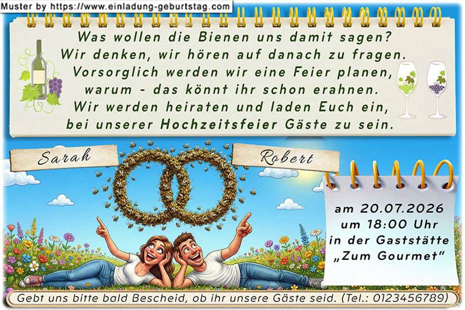 Hochzeitseinladung lustig - die Bienen