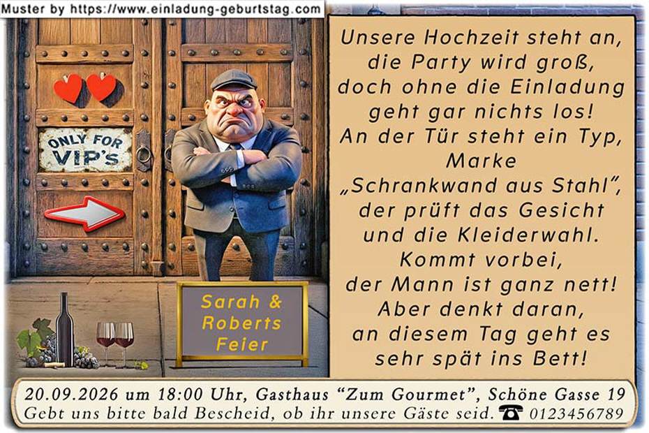 Einladung Hochzeit lustig - der Türsteher