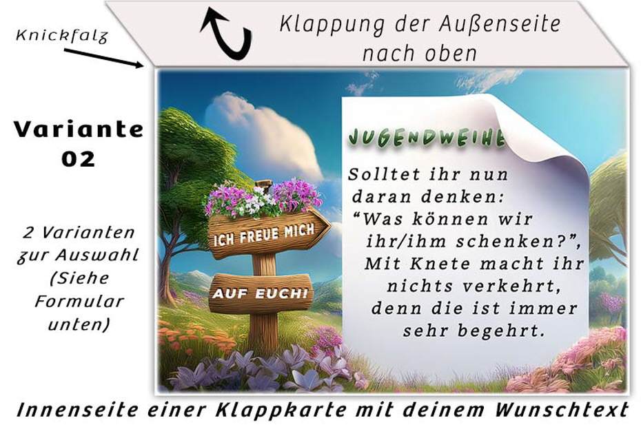 Wünschst du Klappkarten, kannst du aus 2 Gestaltungsvarianten der Innenseite wählen (kann im Formular unten angegeben werden)