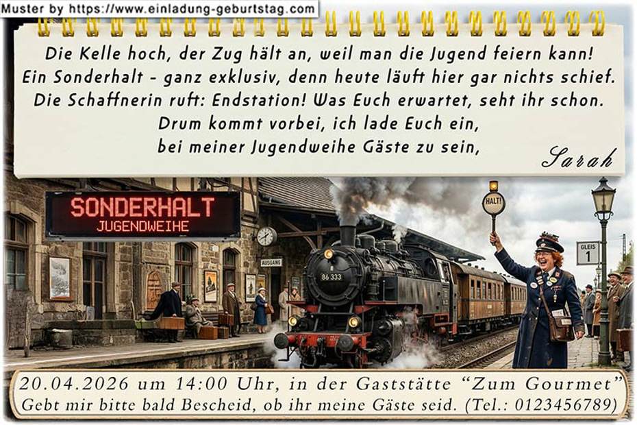 Du wünschst ein Vorschaubild dieser Einladungskarte mit deinen Angaben ohne gleich eine Bestellung aufzugeben - hier kannst du es unverbindlich anfordern und nach dem Erhalt selbst entscheiden, ob du diese Karten bestellen möchtest.