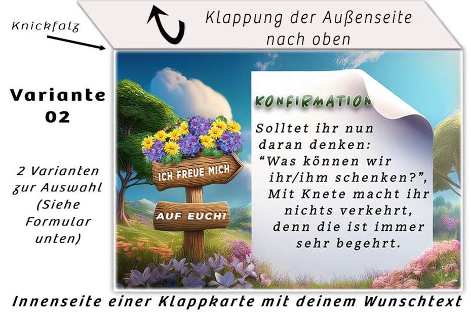 Wünschst du Klappkarten, kannst du aus 2 Gestaltungsvarianten der Innenseite wählen (kann im Formular unten angegeben werden)