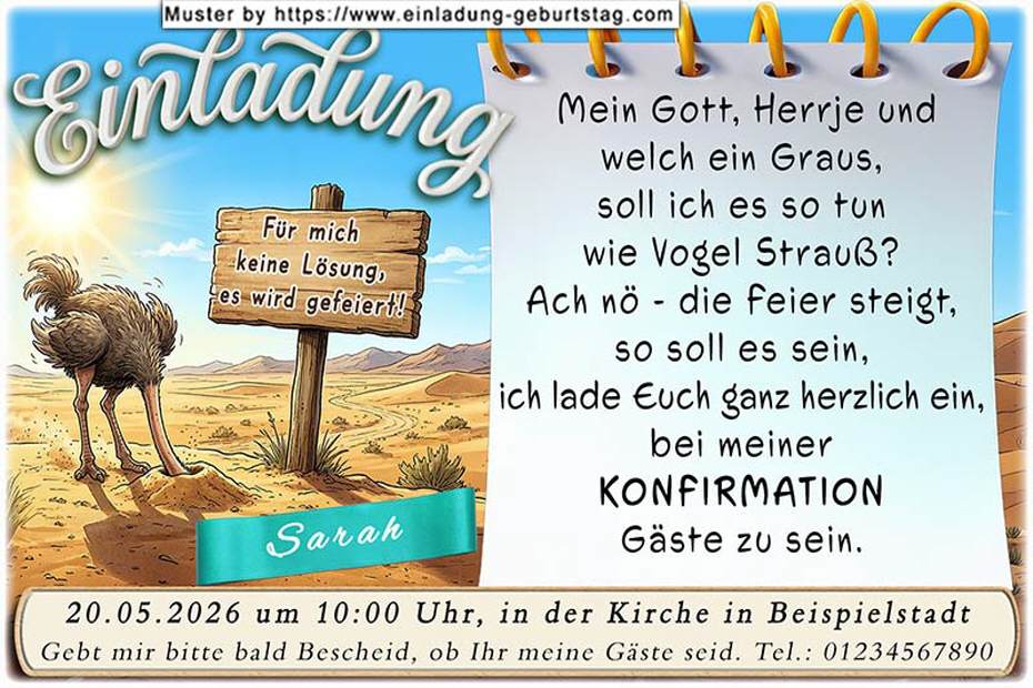die lustige Einladungskarte zur Konfirmation 01