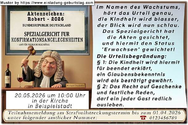 Das Spezialgericht für Konfirmationsangelegenheiten unter dem Vorsitz von Richter Gnadenlos.