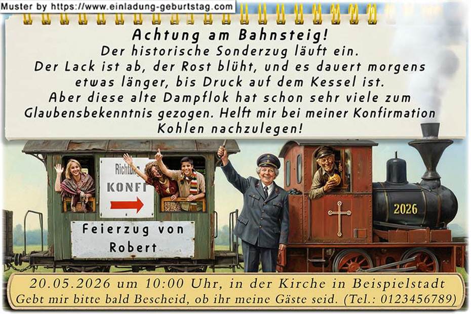 Der Sonderzug KONFIRMATION steht zur Abfahrt bereit und erwartet deine Gäste.