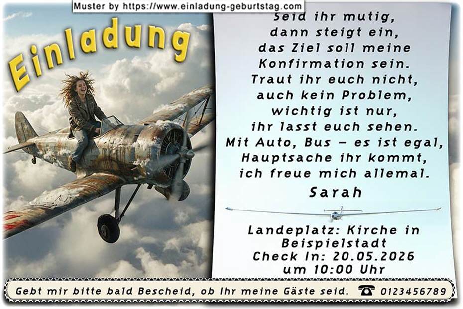 Du wünschst ein Vorschaubild dieser Einladungskarte mit deinen Angaben ohne gleich eine Bestellung aufzugeben - hier kannst du es unverbindlich anfordern und nach dem Erhalt selbst entscheiden, ob du diese Karten bestellen möchtest.