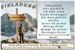 Gipfelkreuz erreicht – kommt zu meiner Basislagerparty. Auf dem Gipfelkreuz befindet sich das Wort Konfirmation.