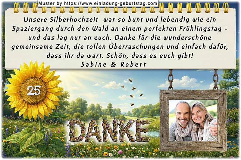 Ihr Foto wird in den rustikalen Holzrahmen eingesetzt, der am Textfeld hängt. In die Sonnenblume wird Ihre Jubiläumszahl gedruckt.