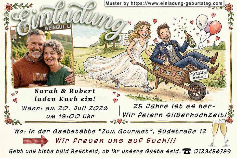 • Sie wünschen ein Vorschaubild dieser Einladungskarte mit Ihren Angaben ohne gleich eine Bestellung aufzugeben - hier können Sie es unverbindlich anfordern und nach dem Erhalt selbst entscheiden, ob Sie diese Karten bestellen möchten.