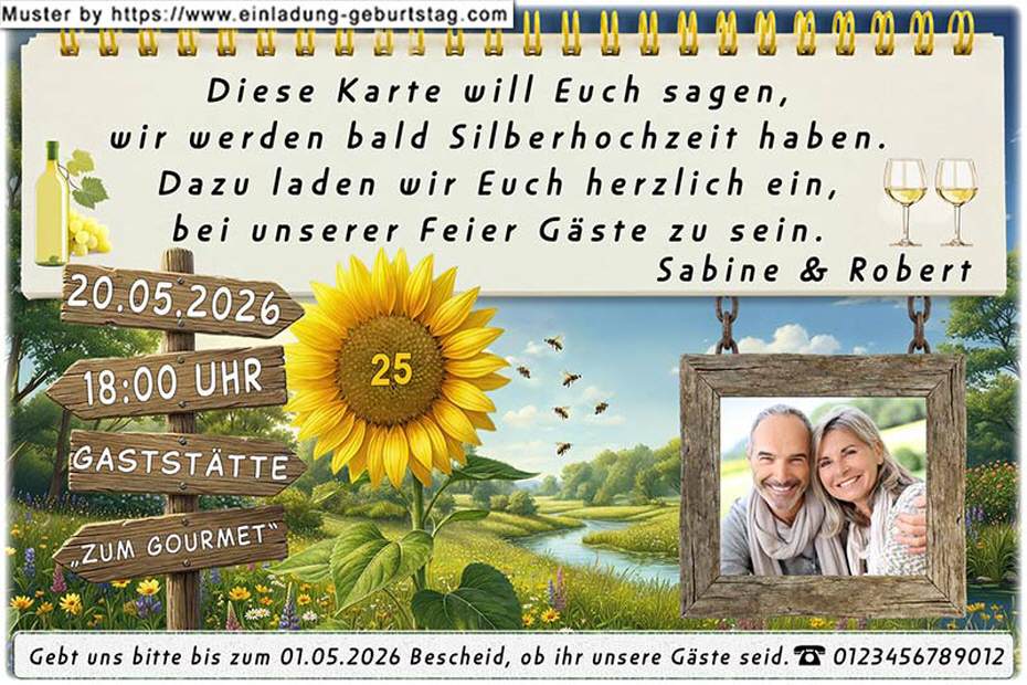 Beispiel: Diese Karte will Euch sagen, wir werden bald Silberhochzeit haben. Dazu laden wir Euch herzlich ein, bei unserer Feier Gäste zu sein.